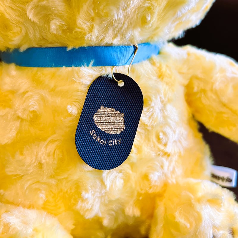 ぬいぐるみの袋にドッグタグを封入して梱包、発送いたします。